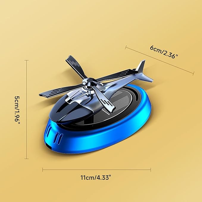 Elevate your car's interior with this sleek solar-powered helicopter air freshener. Automatically rotates in sunlight, spreading a refreshing fragrance throughout your car. A perfect combination of style and function, this diffuser adds a modern touch to your dashboard while keeping your car smelling fresh!